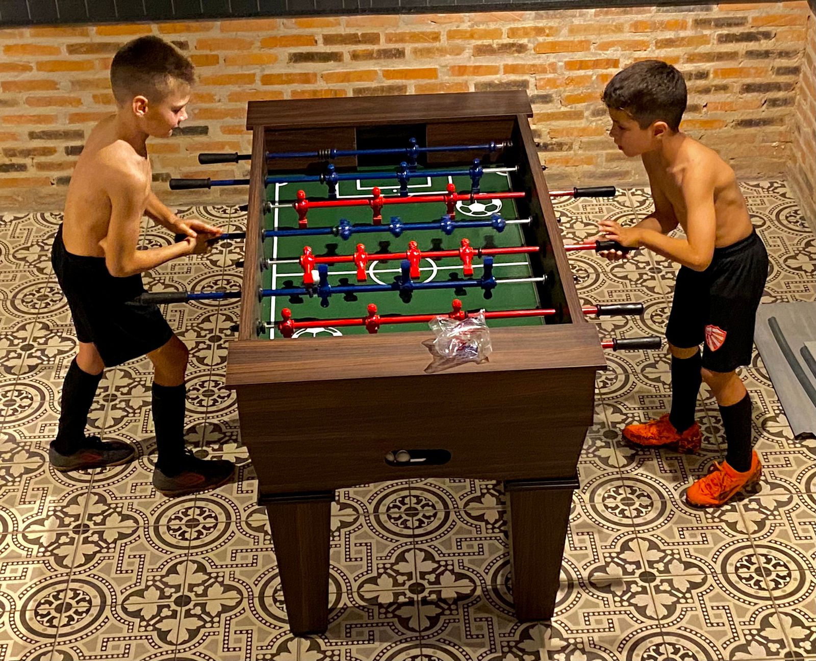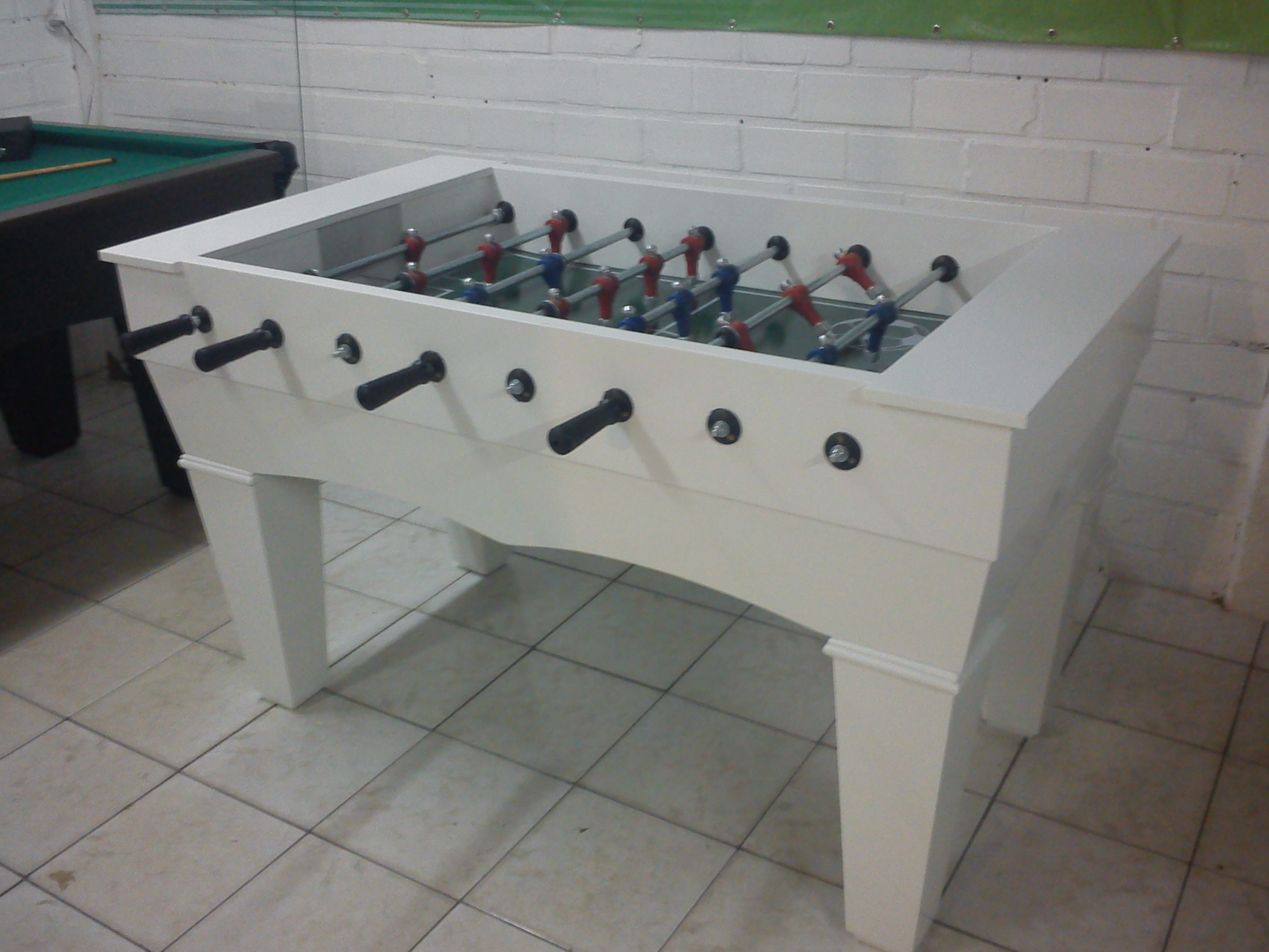 A mesa de pebolim 1 é simplesmente perfeita para os apaixonados por futebol.