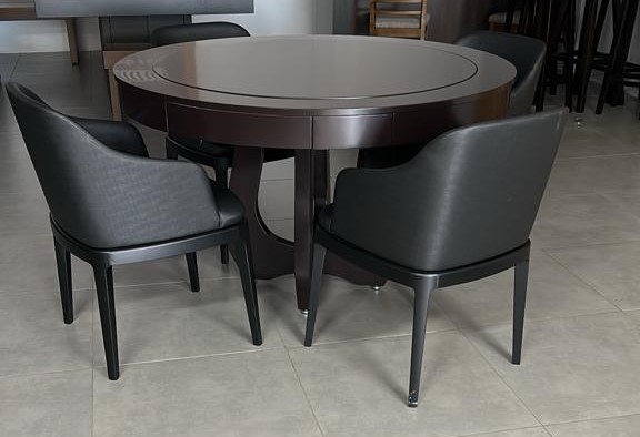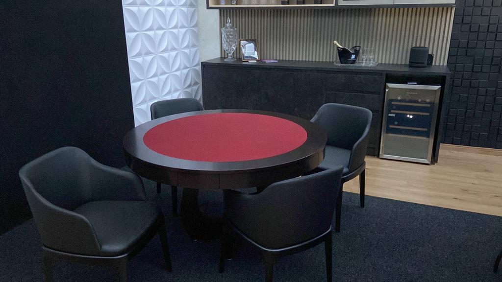 O Carteado 4 mede 1,20 de diâmetro e comporta 4 pessoas, possui 4 gavetas porta copos. Pode ser feito sob medida conforme suas necessidades.
